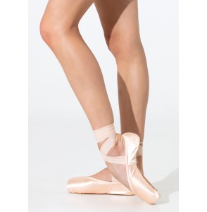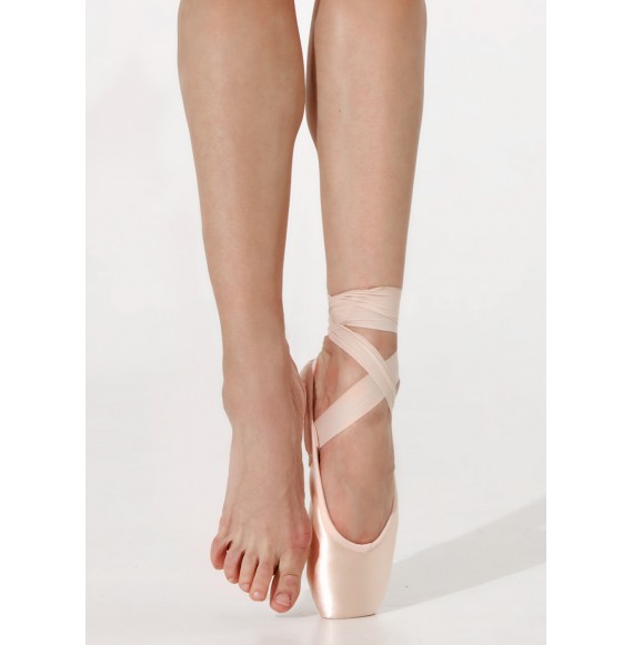 Mascherina ampia per i piedi a pianta larga, suola in camoscio flessibile, mascherina estremamente piatta che fornisce alla ballerina stabilità e un equilibrio sicuro. Tallone foderato internamente in microfibra antiscivolo. Interno totalmente imbottito in morbido tessuto  effetto memory foam, è presente un piccolo cuscinetto nella punta di (2 mm) che aiuta ad attutire il lavoro in punta. Scollo con forma ad U , passaggio in mezza punta facile grazie alla tecnologia "easy roll-through". Questa scarpa da punta è perfetta per coloro che cercano una scarpetta dalla forma molto ampia nell'area del metatarso , con un tallone basso ma che valorizzi il piede fin dal primo momento. Disponibili con suola: M - morbida H - rinforzata